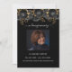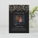 Un programme élégant de 2 pages. Un arrière - plan noir classique, des flores noires et dorées et un espace pour une photo. Personnalisez et ajoutez le nom, les dates et votre texte.