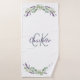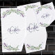 Arrière - plan blanc, décoré de fleurs de lavande et de verdure d'eucalyptus. Personnalisez et ajoutez un nom et des initiales monographiques. Le nom est écrit avec un script de style moderne écrit à la main.