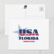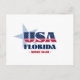 Carte postale de Floride. Un design de typographie créatif qui encapsule l'essence de la Floride avec des couleurs audacieuses rouge, blanc et bleu, et des éléments patriotiques, y compris les étoiles et les rayures.