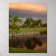 Photo d'un magnifique coucher de soleil se reflétant au bord d'un lac aux palmiers, dans un cadre tropical. Photographié en Floride.