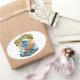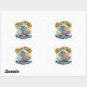 Flow With The Happy Waves Waterproof Sticker adds a splash of joy to your surfaces! This high-quality vinyl sticker features a cartoon wave character surfing happily with a sunny backdrop in retro colors.