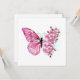 Flower arrangement of pink butterfly with rose Japanese cherry blossoms on white background.
