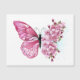 Flower arrangement of pink butterfly with rose Japanese cherry blossoms on white background.