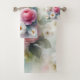 Elegant Watercolor Flowers Art Pink Red Blue White Yellow Green Floral Template Bathroom / Bath Towel Set.