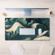 Flowing Harmony: This captivating illustration presents in abstract landscape of undulating waves in rich shades of teal and gold. The fluiic, organic lines evoke the gentle movement of water ripples or rolling hills, creating a mesmerizing sense of flow across the surface. Small, detailed dots are interspersed throughout the design, adding texture and depth. This artwork beautifully combines traditional artistry with digital techniques, offering a visual tribute to the serene and dynamic beauty of nature. Perfect for those seeking a sophisticated and harmonious piece to enhance their space.