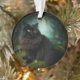 Bois sombre et enchanteur avec papillons et la mousse suspendue aux arbres. Une légère lumière bleue à travers les arbres fond ce félin magnifique qui s'assoit à regarder captivamment à travers les yeux d'or.