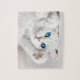 Ce puzzle de jeu est montré avec une photo d'une mignonne chatte blanche et moelleuse. Customisez cet objet ou achetez tel quel. Image stock