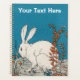 Ce planificateur est bleu avec un lapin blanc moelleux assis sur le sol en grands plantes avec des feuilles oranges et des fleurs. Customisez votre texte avec le modèle.