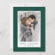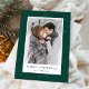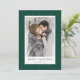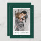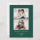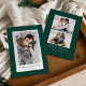 Cartes de fin de année simples et élégants affichant votre photo sur le devant encadré de blanc avec des flocons de neige contre un arrière - plan vert foncé. Le dos de la carte de vacances chic dispose d'espace pour deux photos supplémentaires et un message personnalisé. Personnalisez la carte en ajoutant votre salutation de vacances personnalisée.