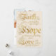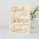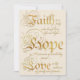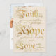 Cette carte de Noël plate personnalisable de flocons de neige de crème et d'or de style d'invitation a des mots d'or fleuris là-dessus que dites la "foi dans un bébé qui apporte l'amour, la vie, et la lumière, l'espoir dans sa promesse de paix éternelle, l'amour dans l'étreinte de la famille et les amis." Ajoutez votre propres photo et messages numériques utilisant les boîtes de modèle sur le dos.