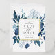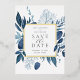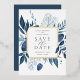 Notre mariage Winter Azure sauvez la date encadre vos détails mariages avec une bordure carré élégante de feuillage d'aquarelle glacée dans les tons marine et bleu poussiéreux, avec de véritables garnitures en feuille d'or sur un arrière - plan blanc immaculé. Un regard moderne et élégant sur la tendance botanique.