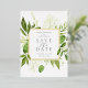 Notre mariage Wild Meadow sauvegardez les cadres de date de vos détails mariages avec une bordure carré élégante de feuillage d'aquarelle luxuriante dans les tons printemps de mousse et de vert sauge, avec de véritables garnitures de feuille d'or sur un arrière - plan blanc immaculé. Un regard moderne et élégant sur la tendance botanique pour les mariages du printemps ou de l'été dans les verts frais.