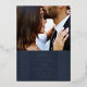 Annoncez votre date de fiançailles ou de mariage avec ce chic enregistrer la carte de date. Une photo du couple heureux figure en haut de la carte, tandis qu'un cadre décoratif orné est placé ci-dessous. Le cadre, ainsi que les détails de l'événement, sont pressés en feuille d'or ou d'argent pour ajouter de l'élégance. Le dos de la carte est muni d'un dossier coordonné en couleur avec une texture peinte subtile.