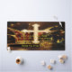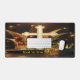 Grande croix dorée avec casquette de jester et couronne dorée avec design typographique.