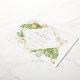 Cette carte de pré-réservation tropicale moderne présente une végétation exotique verte et dorée. Un cadre géométrique élégant en feuille d'or dorée met en valeur le texte en feuille d'or. Des éclaboussures dorées accentuent le design botanique élégant et apportent une touche de fantaisie sophistiquée à l'invitation. Ce design d'oasis insulaire est parfait pour tout mariage en plein air, à la plage ou de destination.
