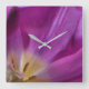 Plongez-vous dans la joie florale et convertissez votre vie à l'heure des tulipes avec cette belle horloge murale carrée en acrylique. L'image est celle d'une tulipe en fleurs par le photographe J. Mummey.