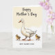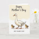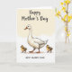 Cette carte représente un grand oiseau aquatique blanc debout fièrement au centre, avec une inclinaison douce de la tête qui suggère une vigilance attentionnée ❤️. Son bec orange et ses pattes palmées assorties ajoutent une touche chaleureuse de couleur sur les plumes douces et crémeuses. Deux petits poussins duveteux se tiennent debout de chaque côté, colorés d'un jaune doré avec des taches de brun clair, penchés comme s'ils se sentent en sécurité près de leur gardien. Leurs yeux tournés vers l'avant et leur posture légèrement repliée créent une scène tendre et centrée sur la proximité, qui ressemble à une amitié silencieuse et à une intimité familiale. L'arrière-plan est un lavis crémeux chaud, comme la lumière de fin de matinée, qui garde le décor simple et calme 🌼. Un court message est placé près du haut dans une teinte orange douce, avec une ligne de texte plus petite placée en dessous dans un brun atténué. Un ombrage fin le long des ailes et du cou de l'oiseau adulte donne de