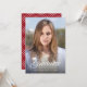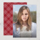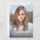 Cette carte d'annonce de fin d'études comporte une toque et le mot "Graduate" en écriture cursive sur un fond dégradé sombre pour fournir un contraste. Le verso présente un motif géométrique blanc sur une couleur de fond modifiable. Pour le changer, cliquez sur "personnaliser", sélectionnez le verso de la carte, choisissez "arrière-plan" et modifiez la couleur. C'est un excellent moyen d'adapter votre annonce aux couleurs de votre école.