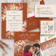 Carte de numéro de table en terre cuite avec calligraphie élégante et numéro personnalisé. Ce design botanique a un auvent de feuillage aquarelle avec bouquet en cascade de feuilles dans les tons de rouille cannelle crème amande jaune et or. Design élégant et feutré avec un style moderne et une palette de couleurs riche, chaleureuse et terreuse. Veuillez naviguer dans ma boutique - collection feuillage duet - pour les articles correspondants.