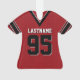 Maillot de football rouge, noir et blanc avec nom et numéro personnalisés. Modifiez le numéro et les noms comme préférés.