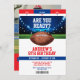 Are you ready for some football? Invite all your friends and family to celebrate your child's birthday with this football ticket invitation! Easily edit with your details. Add your child's football photo to the back of the ticket. This design features a football stadium, field and football illustration.