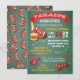 Douche arrière de football amusant pour une douche à couple, baby shower ou douche nuptiale. Comprend un football, un hamburger, de la bière, un doigt en mousse et une corne avec des signaux directionnels de tableau de bord sur un arrière - plan de tableau de bord vert. Illustration tirée à la main par McBooboos