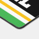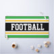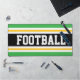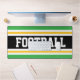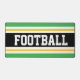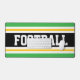 Ce design sportif coloré et audacieux présente du texte de FOOTBALL athlétique à l'intérieur d'une large bande noire centrale, associée à des rayures de course jaune, blanc et bleu vif. Les couleurs et le texte de ce design peuvent être personnalisés.
