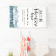 Laissez l'aventure commencer forêt rustique aventure thème thème bleu aquarelle bannière baby shower avec forêt et montagne sauvage paysage et calligraphie typographie avec coeur au milieu.