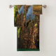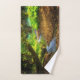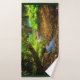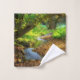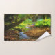 Serviette sertie d'une forêt verdoyante et d'une jolie crique sinueuse. Des feuilles Brown couvrent le sol de la forêt, offrant un joli contraste avec la végétation luxuriante de ces bois magiques.