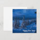 Paysage d'hiver avec pins et sapins enneigés au clair de lune à la nuit étoilée. Vue panoramique de la forêt de conifères avec sentier en bois près de la côte de la mer contre un beau ciel nocturne avec étoiles