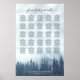 Ce beau tableau de 25 places mariage comprend des assignations de table pour 250 personnes à la traditionnelle 10 places par table. Le design est rustique et élégant, avec une pinède ou une épicéa bleue entourée de brume ou de brouillard. Le titre dit : S'il vous plaît trouver votre table, et est écrit en calligraphie de script sophistiquée. Il y a de l'espace pour les noms du couple et la date du mariage ci-dessous. Idéal pour un mariage en plein air ou en montagne.