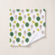 Cet ensemble de serviettes a un design scandinave répétitif d'une forêt dans les tons marron et vert et jaune étoiles.