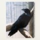 Un corbeau noir assis sur une branche. L'hiver et la forêt tout autour avec la neige tomber.