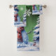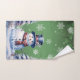 Ajoutez une touche festive à votre décoration de salle de bain cette saison des fêtes avec un ensemble de serviettes de Noël Bonhomme de neige de la forêt d'hiver verte. Le design de la serviette présente un adorable bonhomme de neige portant un chapeau haut de forme et une écharpe, debout dans une scène de forêt hivernale avec de la neige qui tombe. D'autres articles cadeaux et de fête sont également disponibles avec ce design.