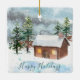 Forêt d'hiver, cerf, bûcher cabine Ornement cérami
