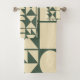 Motif géométrique moderne avec des formes simples en crème sur un arrière - plan vert de forêt.