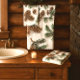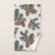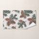Améliorez une salle de bain de style chalet avec cet ensemble de serviettes de bain, présentant un design de forêt verte rustique. Le motif comprend des pommes de pin sur un fond blanc et convient à la fois à la saison de Noël et aux mois d'hiver.