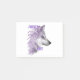 Forever Free Violet Wolf est une image de tête de loup profil latéral. Le design montre la belle face de loup dans les tons de violet avec la fourrure qui s'enfonce dans de subtils arbres forestiers.