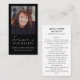 Cette carte de prière chrétienne simple, mais élégante, présente un design épuré et minimaliste et comprend une photo du défunt chéri ainsi que son nom et son année de naissance et en passant avec les mots "Forever in Our Hearts" écrit dans une police de calligraphie moderne, blanche, manuscrite, dressée contre un élégant arrière - plan noir. Au verso se trouve le texte du Psaume 23, que vous changez en texte de votre choix. Personnalisez facilement cette carte funéraire en utilisant les zones de modèle texte. Pour modifier des polices ou des couleurs ou repositionner des zones de texte dans un des modèles, cliquez sur "Personnaliser" et faites défiler les zones de modèle de texte pour cliquer sur "Modifier à l'aide de l'outil de conception". Si vous avez besoin d'une aide supplémentaire pour adapter ces modèles, profitez du service gratuit de Zazzle à l'adresse https://www.zazzle.com/live ou contactez-moi via le système de messagerie de Zazzle. En outre, si vous avez besoin de quelque chose que vous ne voyez pas dans cette collection, veuillez me le faire savoir. Je serais heureux de le concevoir pour vous. Veuillez noter que je crée les designs, mais tous les travaux d'impression et d'expédition sont effectués par Zazzle à ses installations de production, donc s'il y a un problème avec votre commande, veuillez communiquer avec le service à la clientèle au 1-888-892-9953 ou à https://www.zazzle.com/about/ask