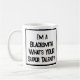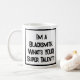 Drôle slogan sur une tasse qui dit "Je suis un forgeron. Quel est VOTRE super talent ?" Mug pour un forgeron. Texte en gras noir et blanc.