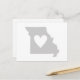 Rester en contact avec un Missourien que vous aimez n'a jamais été aussi facile avec une forme de l'état du Missouri remplie d'un arrière - plan gris solide et d'une carte postale découpée du coeur.