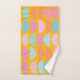 Motif géométrique vif et ludique de formes simples en jaune, rose, corail et vert menthe.