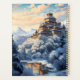 Ce planificateur présente une illustration hivernale d'une forteresse de montagne construite sur une colline et entourée d'une forêt épaisse. La neige casquette tous les arbres et un étang couvert de glace se trouve au fond de la colline, sa surface de verre reflétant la forteresse. Le design est le même sur les couvertures avant et arrière. Personnalisez le front avec l'année en cours.