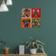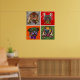 Four unique ugly dog faces with bold, colorful abstract patterns: Pug, Basset Hound, Chinese Crested Dog, Beagle. Popular with dog lovers and pet lovers and rescue dog lovers.