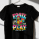 Voici un autre modèle amusant et fantaisiste de t-shirt April Fools’ Day, avec un poulet en caoutchouc de style dessin animé à l’expression surprise, une typographie audacieuse et ludique lisant "Fowl Play" et des confettis colorés. 🐔 ✨ 😂
