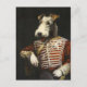 Cette carte postale est illustrée par un Fox Terrier en uniforme victorien. Une tarte.