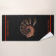 Une image fractale multicolore (rouge, jaune et orange) en spirale, ressemblant à un oiseau ou à un dragon plumé, sur un arrière - plan sombre. Vous pouvez ajouter votre propre texte à deux endroits.