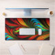 Une plumes, une image fractale en bleu, vert, orange, rouge et jaune crée un beau tapis de bureau.