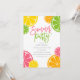 Cette invitation à la fête estivale comporte l'expression "fête d'été" dans un script manuscrit rose et vert moderne. Des agrumes roses, verts, orangés et jaunes entourent les bords extérieurs de l'invitation. Graphique ©MareeTruelove
