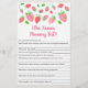 Ces adorable Who Knows Mommy Best Cards sont une activité de Baby shower amusante. Il vous suffit de les faire circuler pendant le Baby shower où vous pourrez vous amuser en répondant aux questions sur la maman à être ! La personne qui a le mieux gagné ! Le design comprend des fraises et de la verdure peintes à la main et colorées.